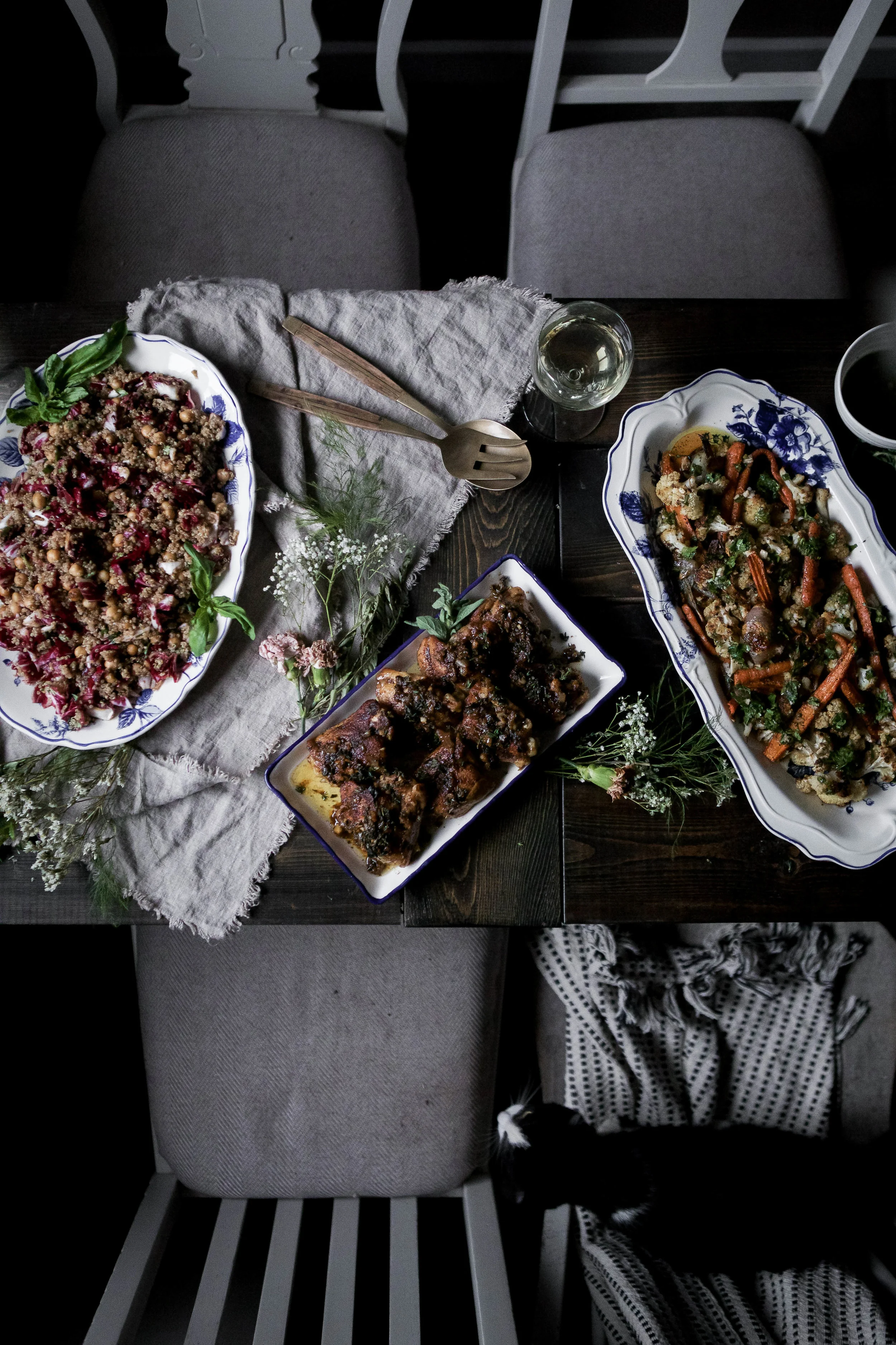 Today's recipe is one that I have been making pretty much all winter long. It is actually inspired by the many beautiful and delicious dinners I have over at Hayley's. It is so simple, absolutely delicious and really healthy. It is part of a three part recipe share I have coming. The other two dishes that go along side this dish will be shared in the coming weeks. All three of the dishes are easy and really really good. Make them all together and you have an entire dinner party meal or make them separate and they still hold their own. Or mix and match them with your favourite dishes. The world is your oyster!