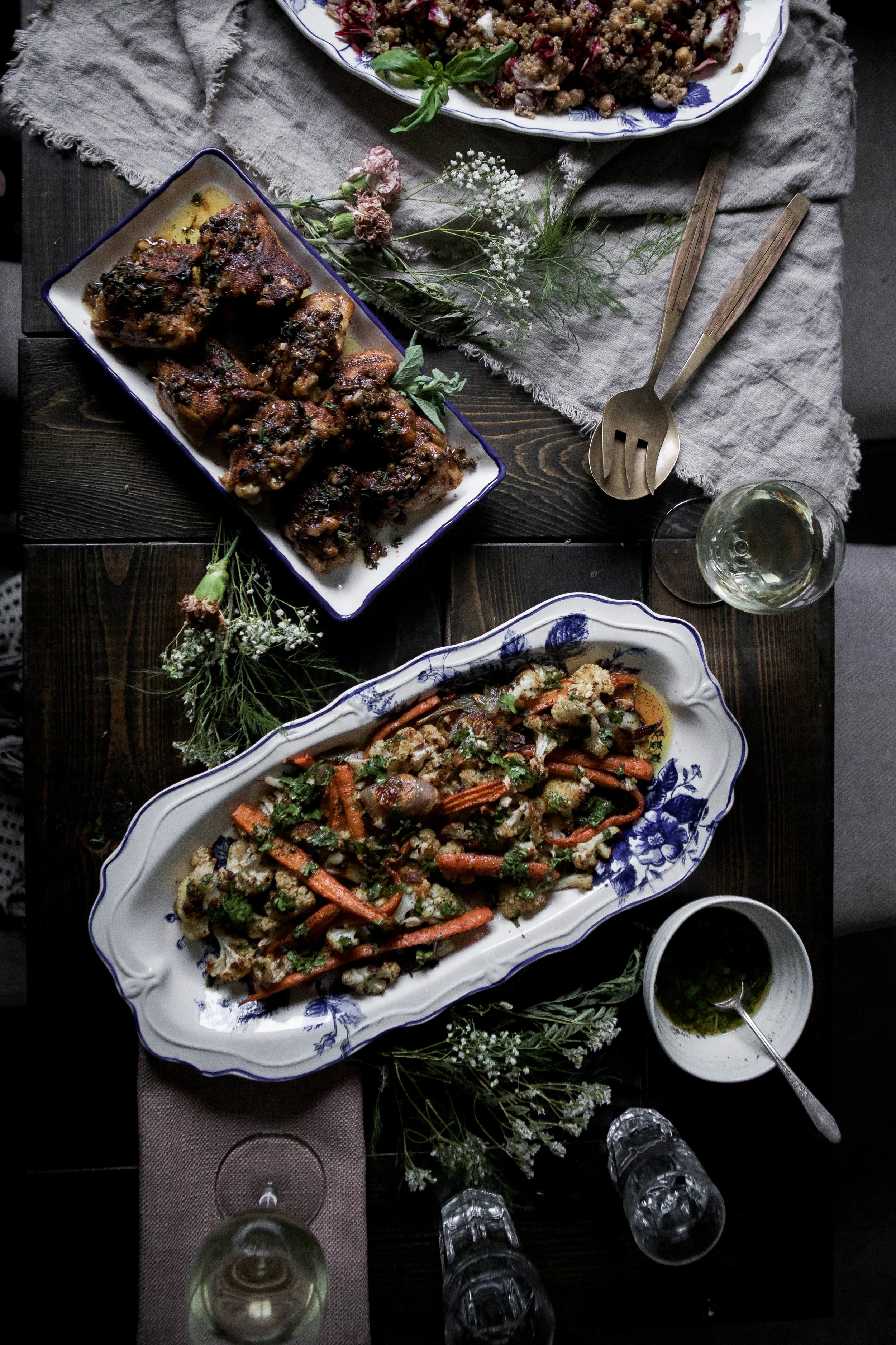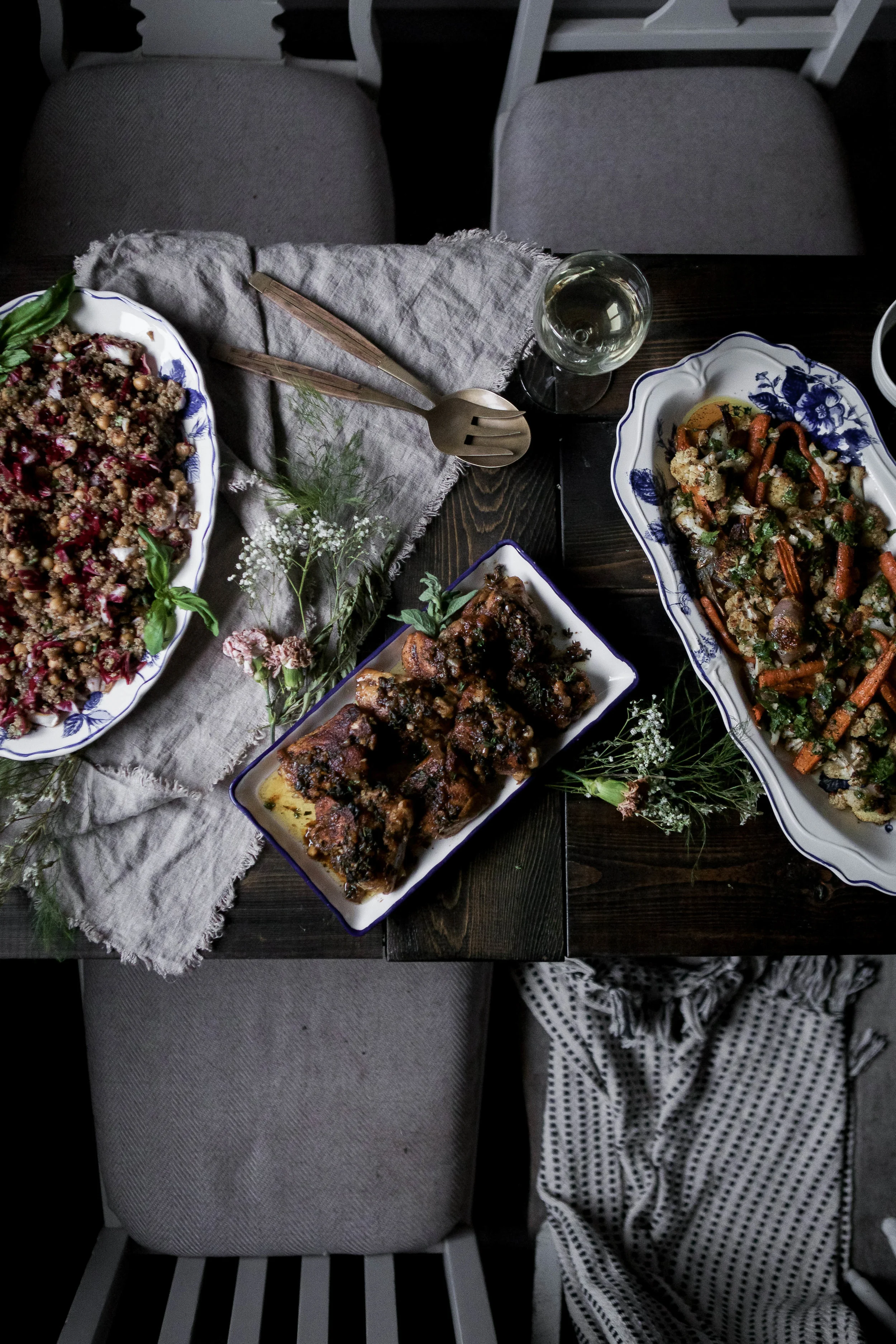 there was a bit of a hideous in my three part dinner series last week so I could share my gluten free, browned butter carrot cake with you for easter but we are back to it this week with the last dish in the series.
