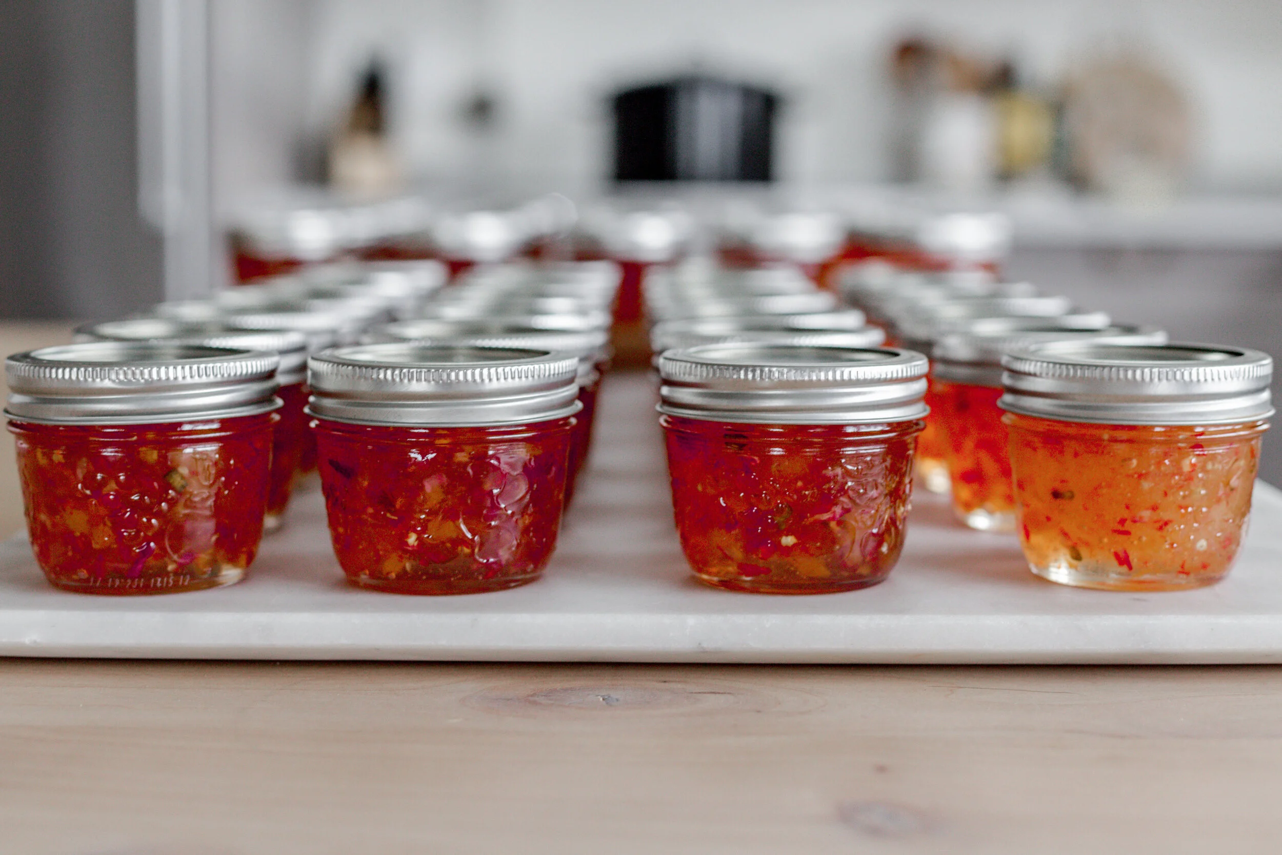 IF by chance your lids have not sealed, this did happen to a few of ours this year, even with our due diligence (I think when it came round to the last batch of jars the water was not quite rolling anymore), you will want to take all the lids off, re boil them, clean the rims of the glass jars really well (wiping with a wet cloth, then drying them) and then re-boiling the jars with lids on. It is annoying and a bit of a process when it happens but if you make sure the water is rolling and stays at a consistent temperature you shouldn’t have to worry about this step!