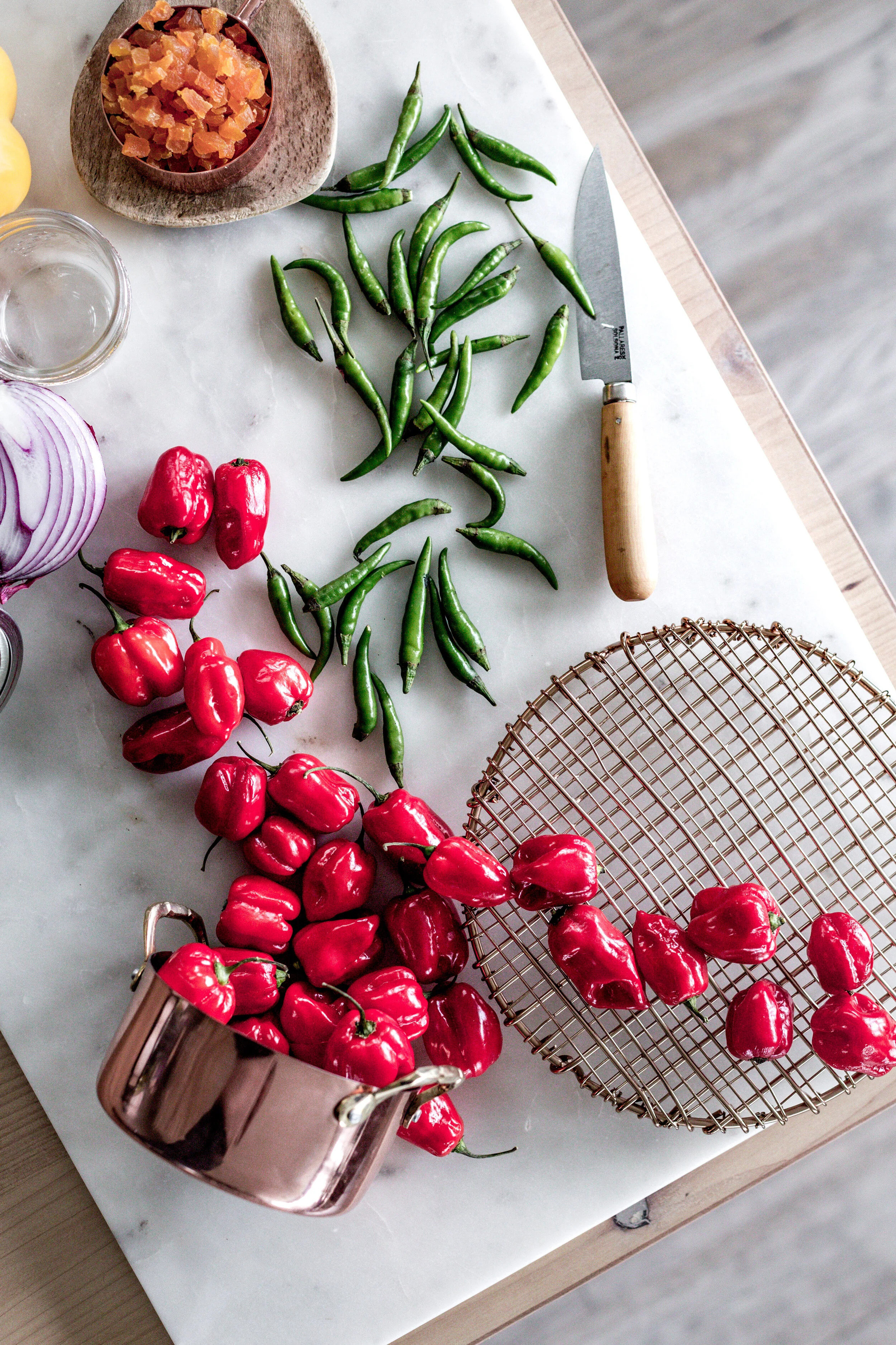 2 cups finely diced scotch bonnet/habanero peppers (approx 2 pints)