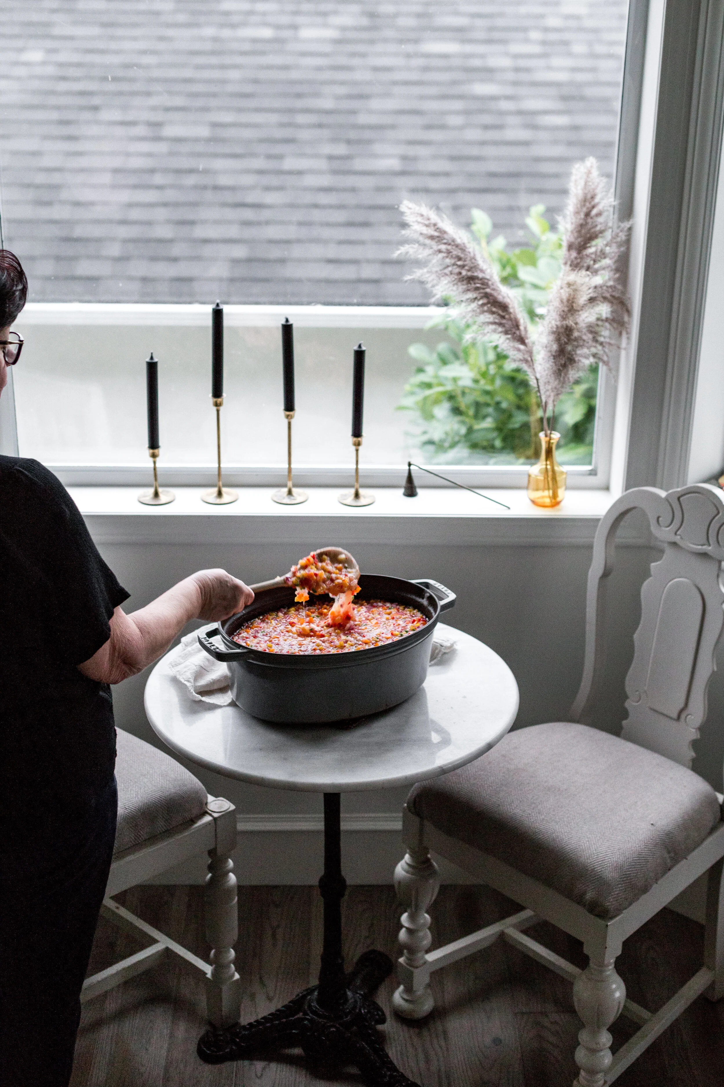 An assembly line at step 4 is always a good idea. My Mom filled the jars with the jelly, I wiped the rims of the glass jars and my bestie made sure the lids were clean, dry and twisted on properly.