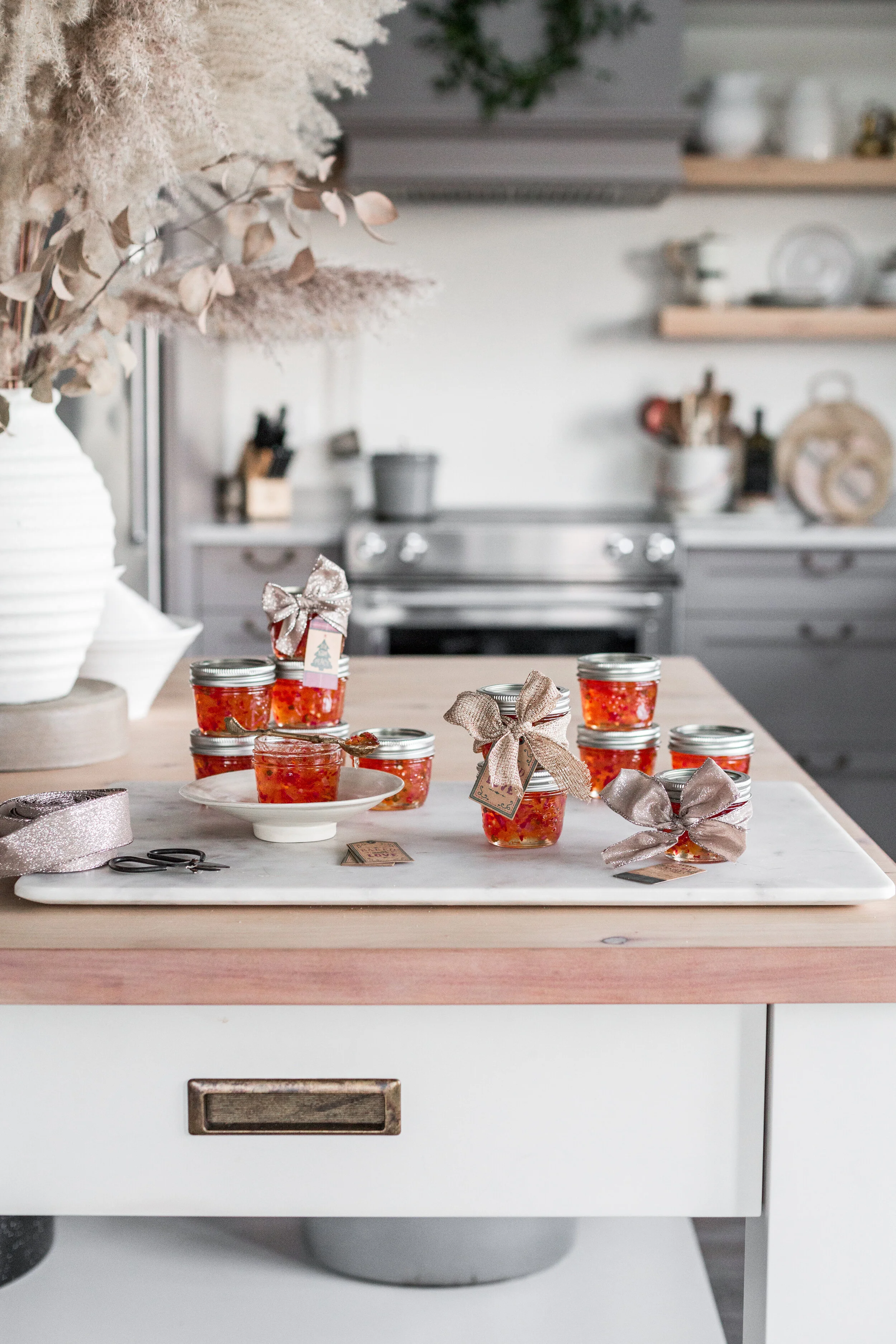 Over the years I have given away jars and jars of this stuff to friends and co-workers and everyone that gets a jar falls in love instantly. I have been asked so many times for a recipe and finally this year I have gotten around to making it myself, well the the help of my Momma and bestie again, we made a large batch and have been passing it around the masses. And, as in past experiences, everyone once again is asking for the recipe, so hallelujah this year I can send them a link with their jar.