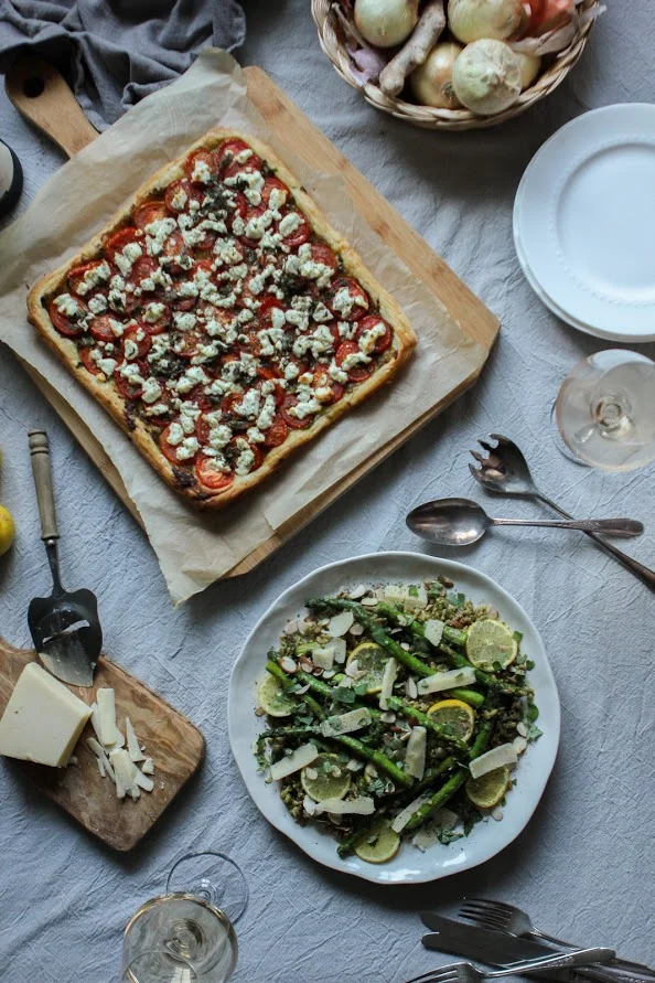Serve warm or room temperature. My shallot fried asparagus farro salad goes exceptionally well as a side with this tart too, recipe here and pictured below.